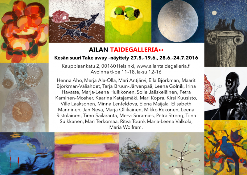 Ailan taidegalleria, Katajannokka, Helsinki “Take away” art exhibition 27.5.-19.6. ja 28.6.-24.7. Incl. my works!