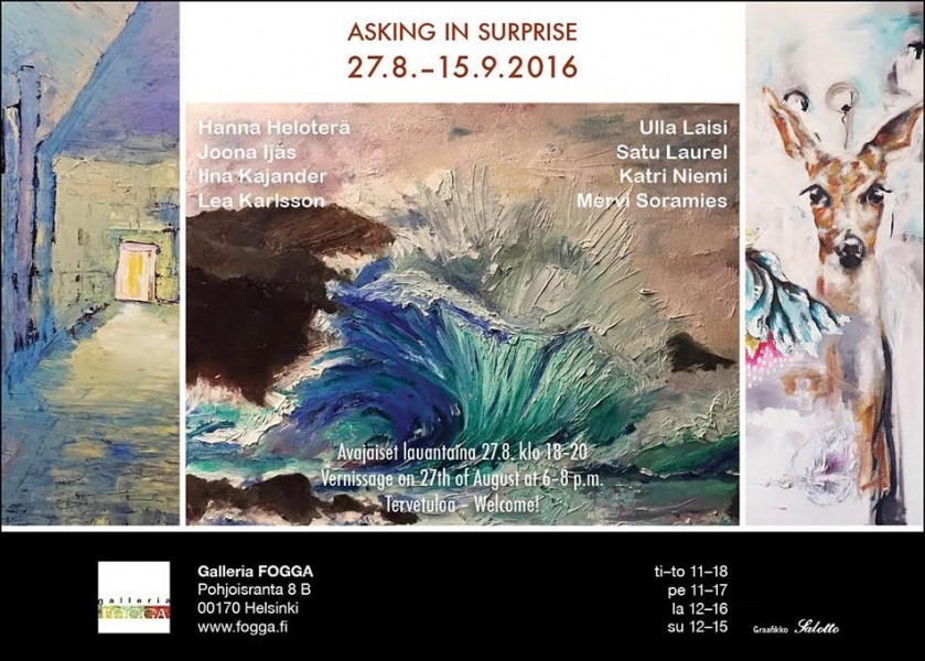 Galleria Fogga, Group exhibition, ASKING IN SURPRISE 27.8. – 15.9.2016, VERNISSAGE 27.8.2016