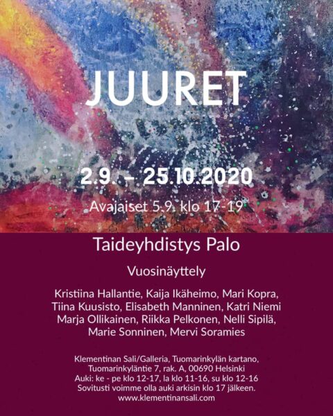 Klementtiinan Sali, group exhibition, 3.11-2.12.2018, Tuomarinkylän kartano, Taidetta suoraan taiteilijoilta