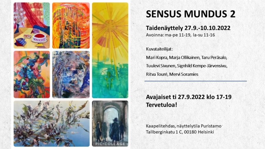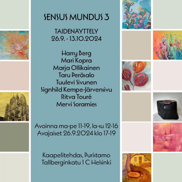 Sensus Mundus 3 Taidenäyttely, Kaapelitehdas Puristamo, yhteisnäyttely, group exhibition 26.9.-13.10.2024